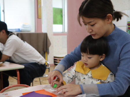 出来ない所は保護者の方に手伝ってもらって