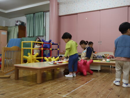 今日はお遊戯室にて