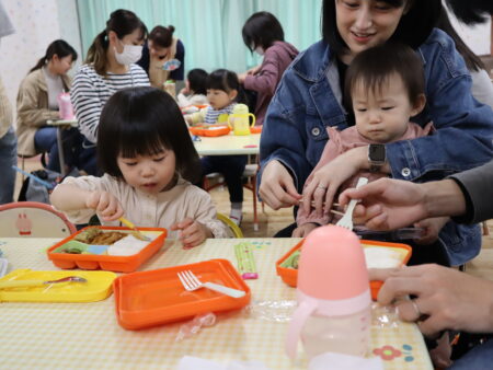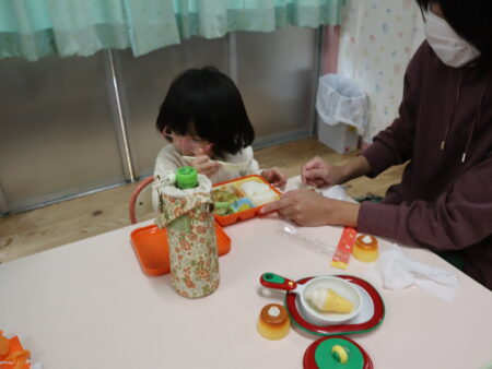 自分でフォークを使って食べられるお友達もいましたね。