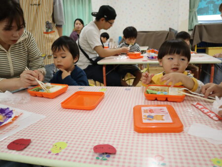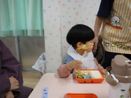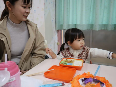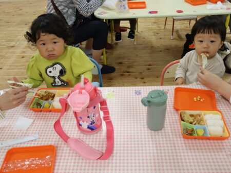 自分でフォークを使って食べられるお友達もいましたね。