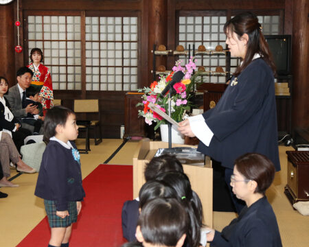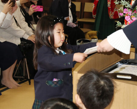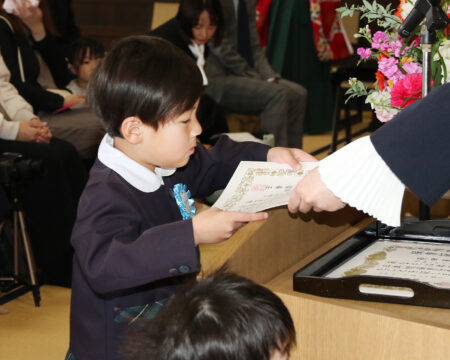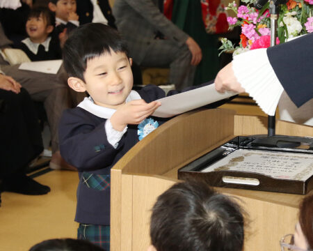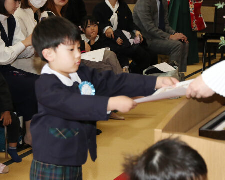 卒園証書授与では園長先生に